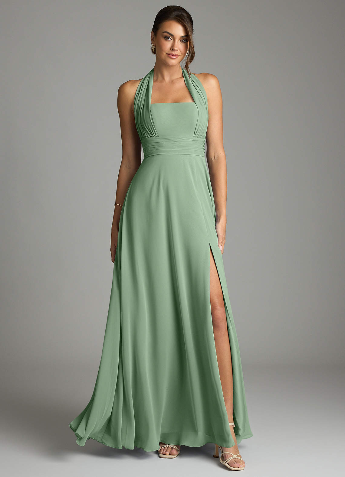 Linia A Pofałdowany Szyfon Do ziemi Sukienka