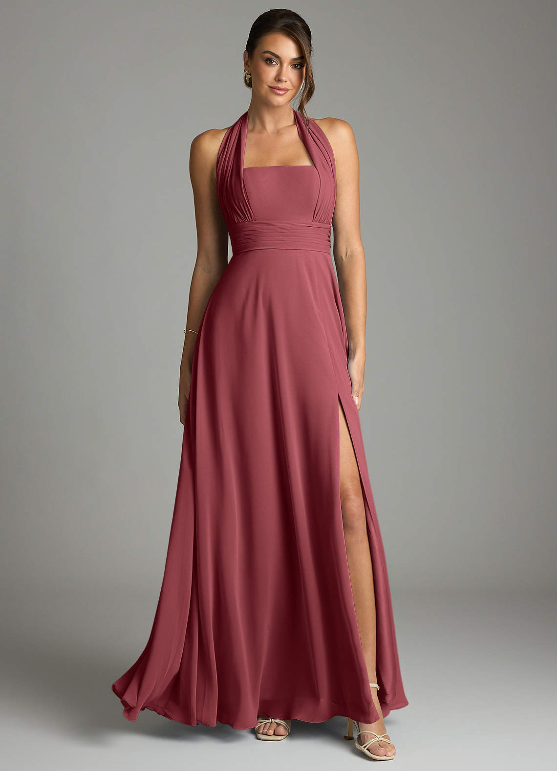 Linia A Pofałdowany Szyfon Do ziemi Sukienka