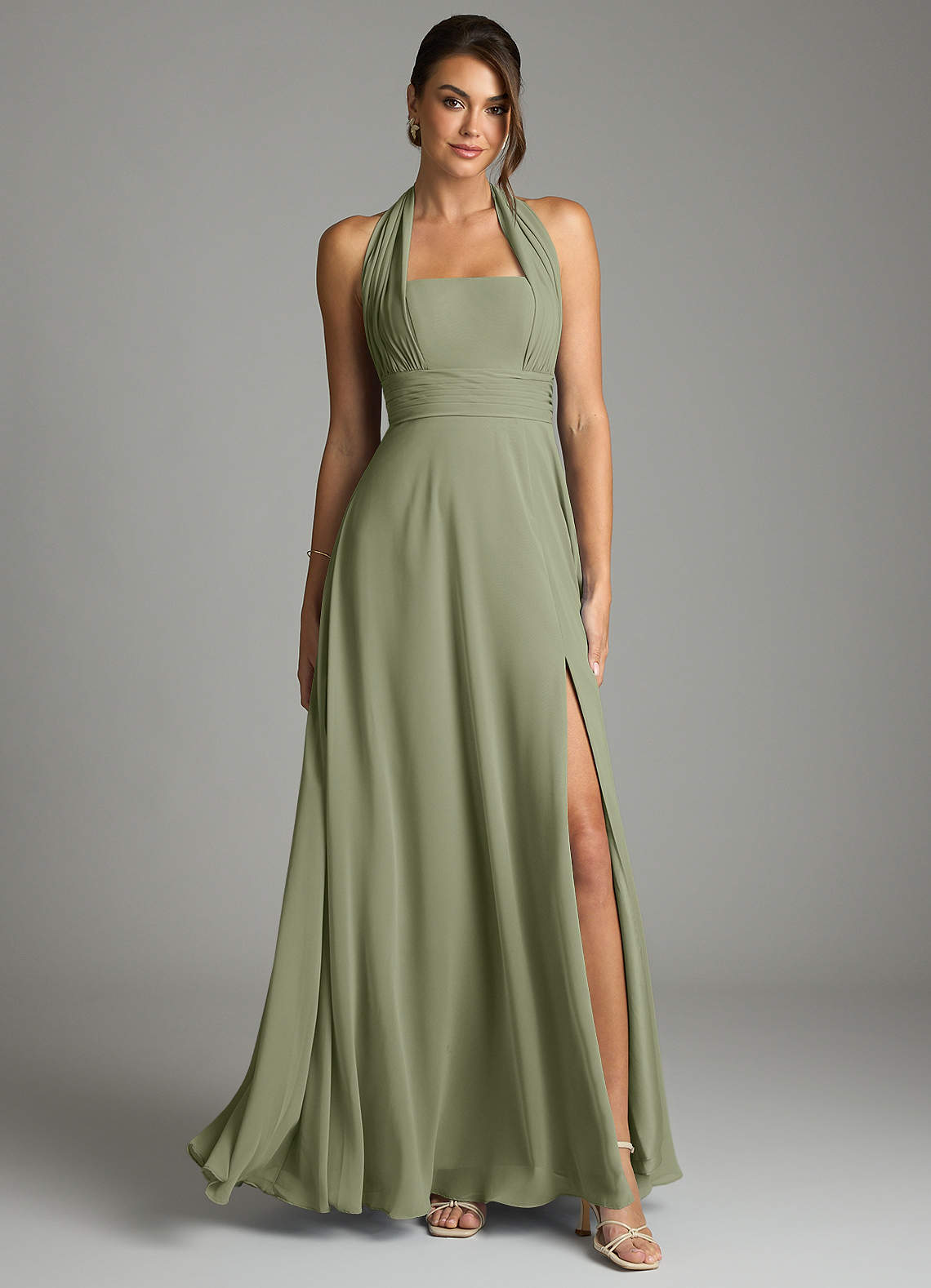 Linia A Pofałdowany Szyfon Do ziemi Sukienka