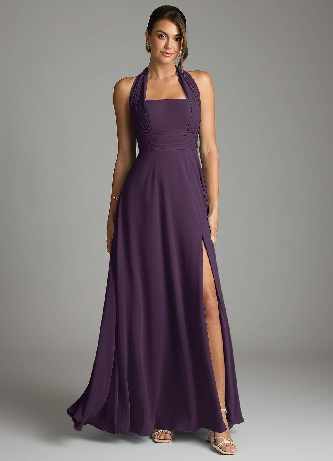 Linia A Pofałdowany Szyfon Do ziemi Sukienka