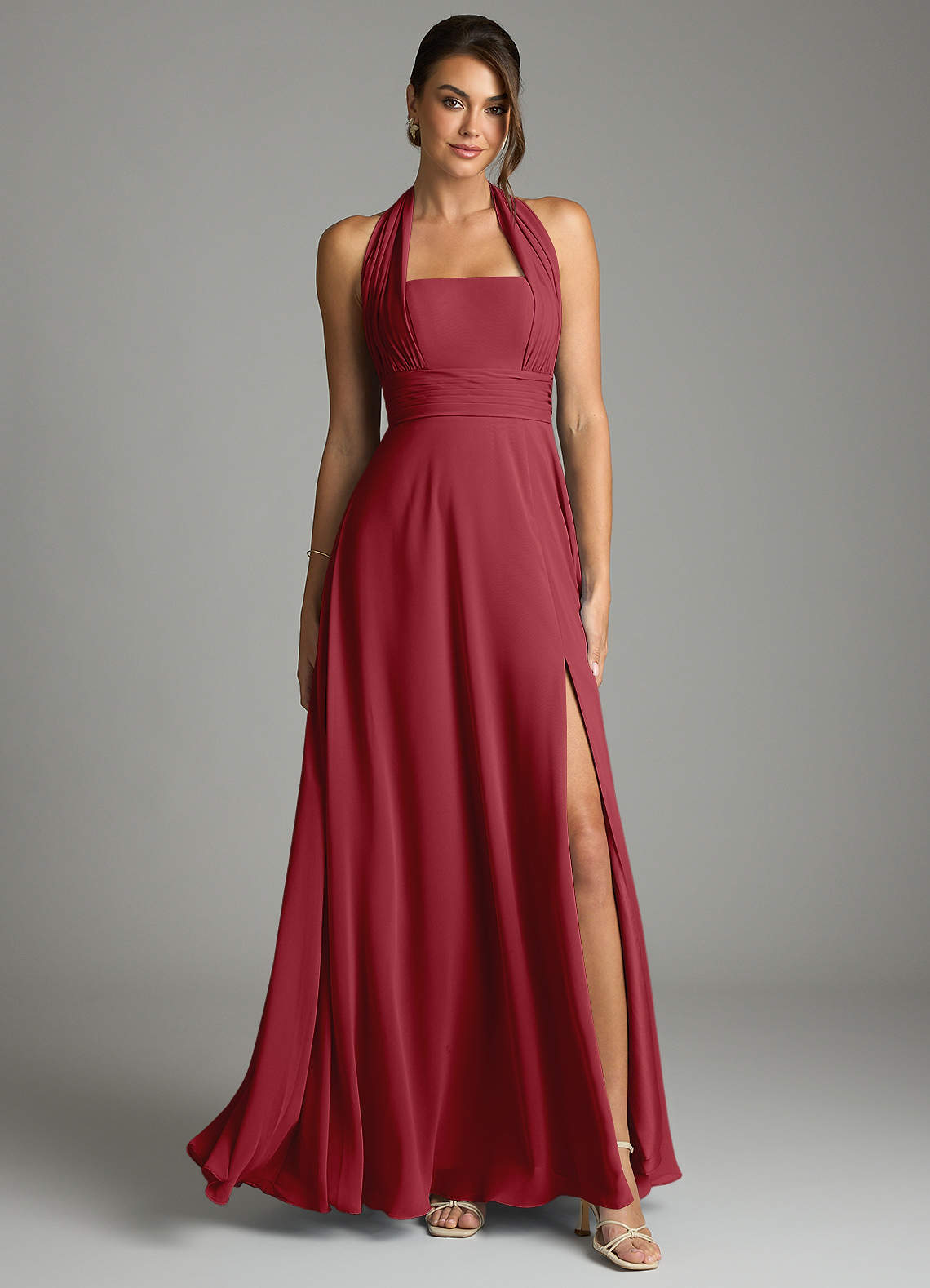 Linia A Pofałdowany Szyfon Do ziemi Sukienka