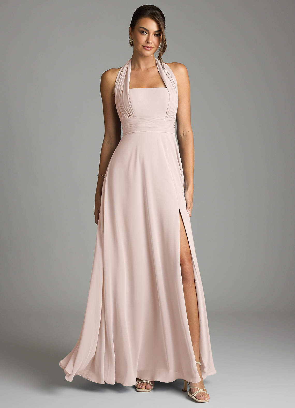 Linia A Pofałdowany Szyfon Do ziemi Sukienka