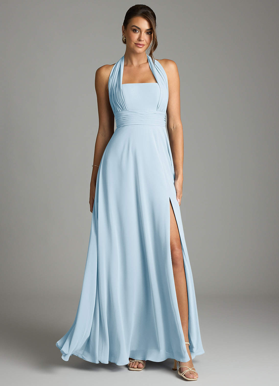 Linia A Pofałdowany Szyfon Do ziemi Sukienka