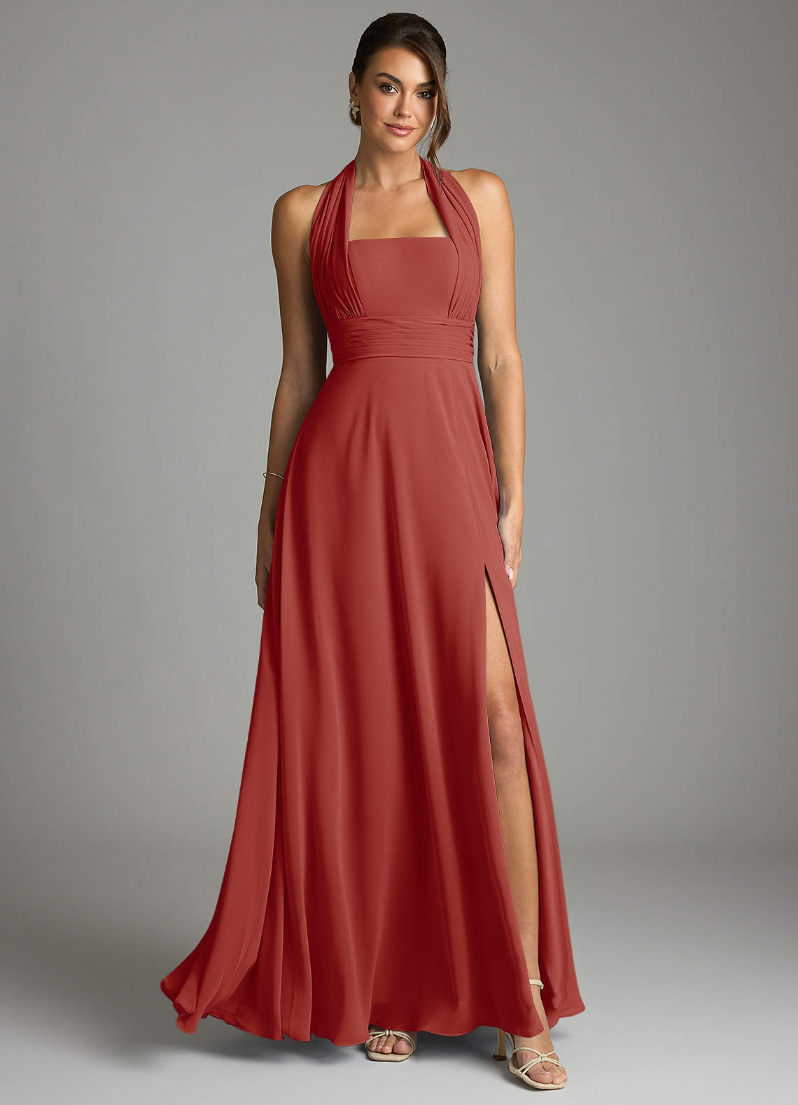 Linia A Pofałdowany Szyfon Do ziemi Sukienka