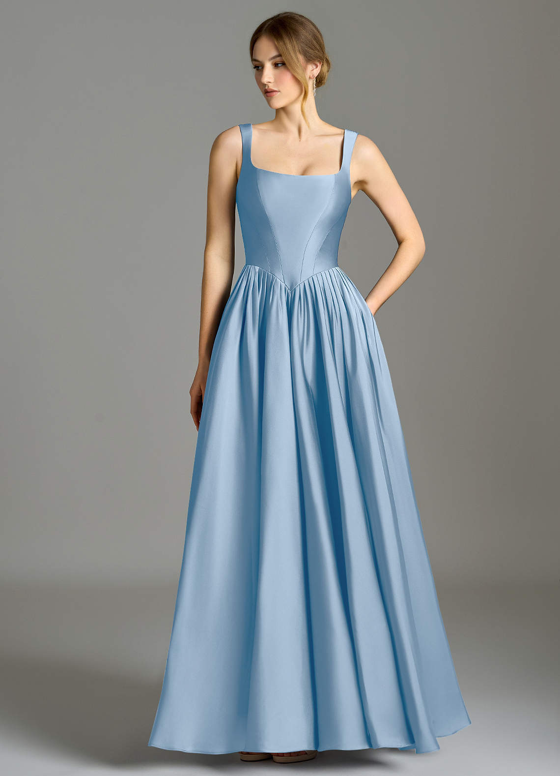 Linia A Pofałdowany Satyna elastyczna Do ziemi Sukienka