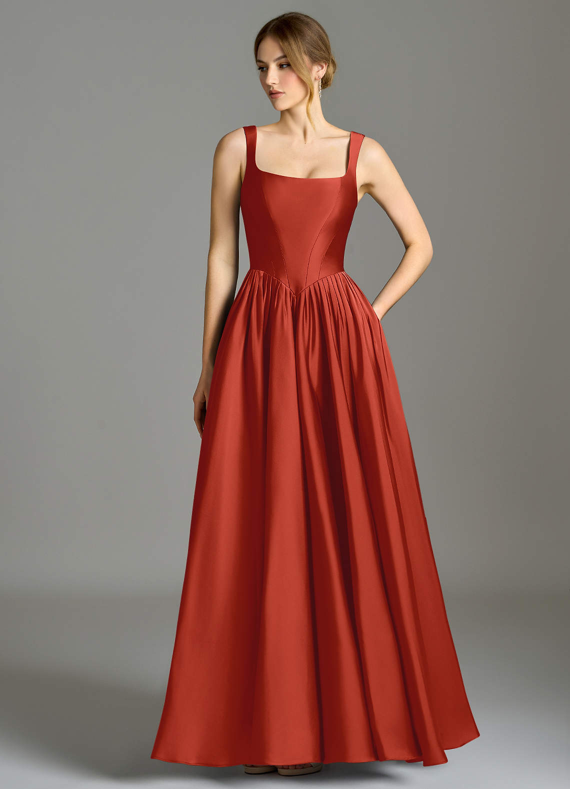 Linia A Pofałdowany Satyna elastyczna Do ziemi Sukienka
