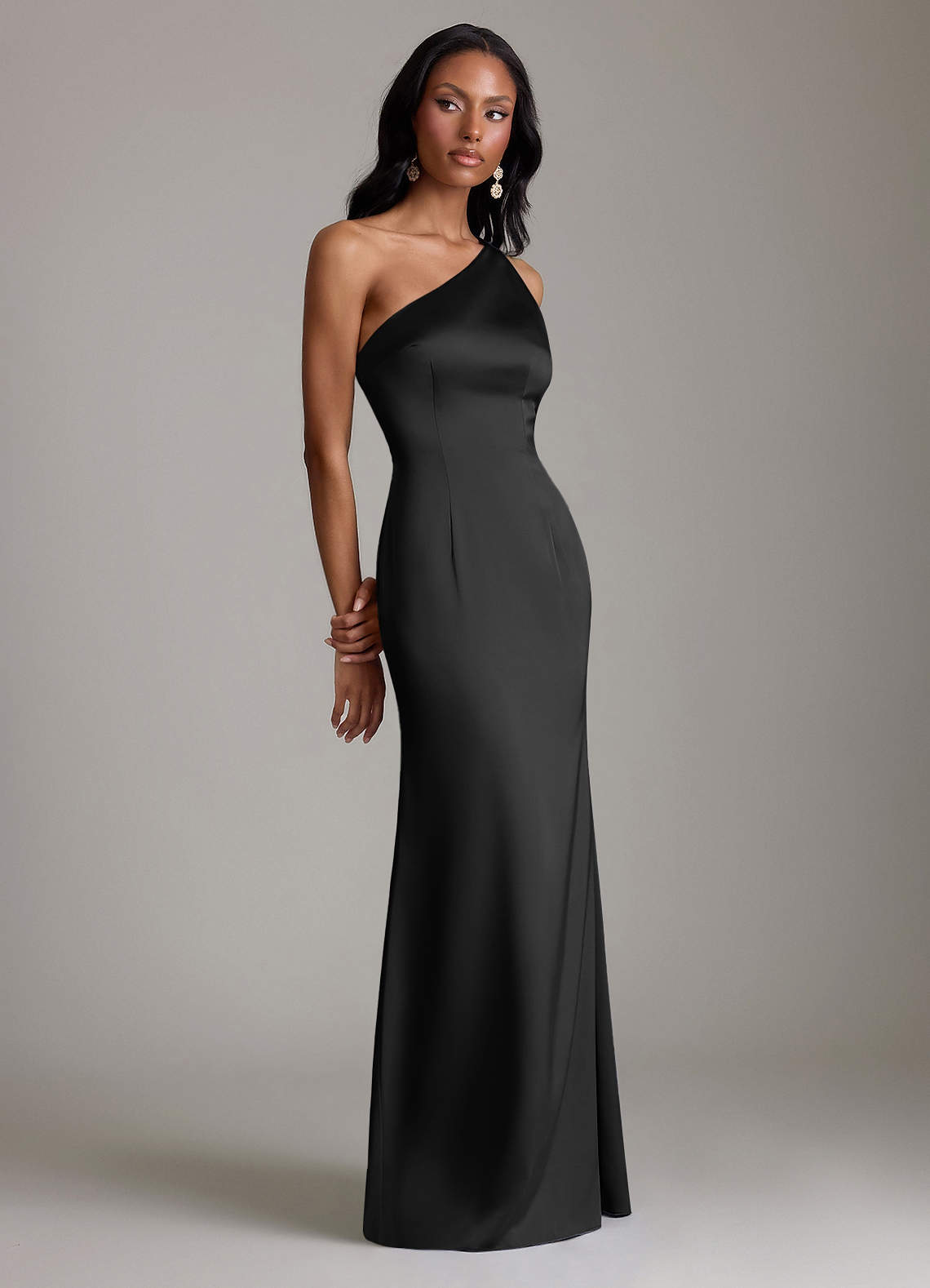 Syrena Jedno ramię Satyna elastyczna Do ziemi Sukienka