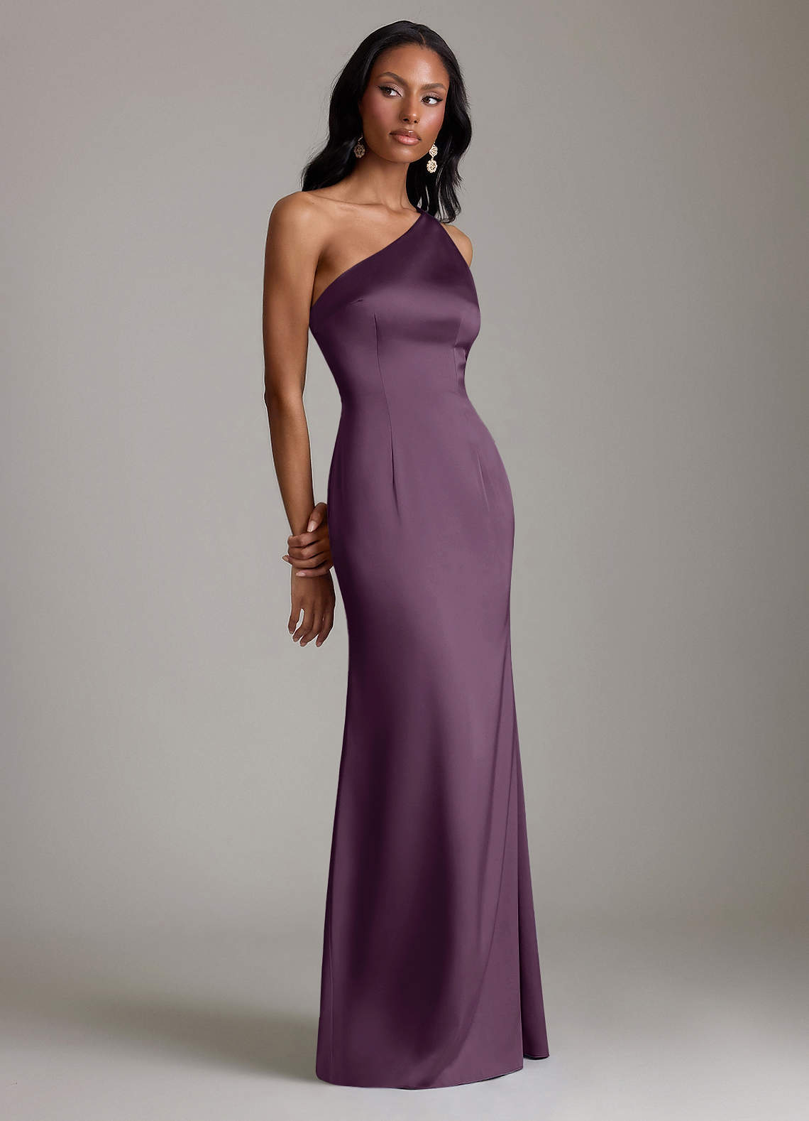 Syrena Jedno ramię Satyna elastyczna Do ziemi Sukienka