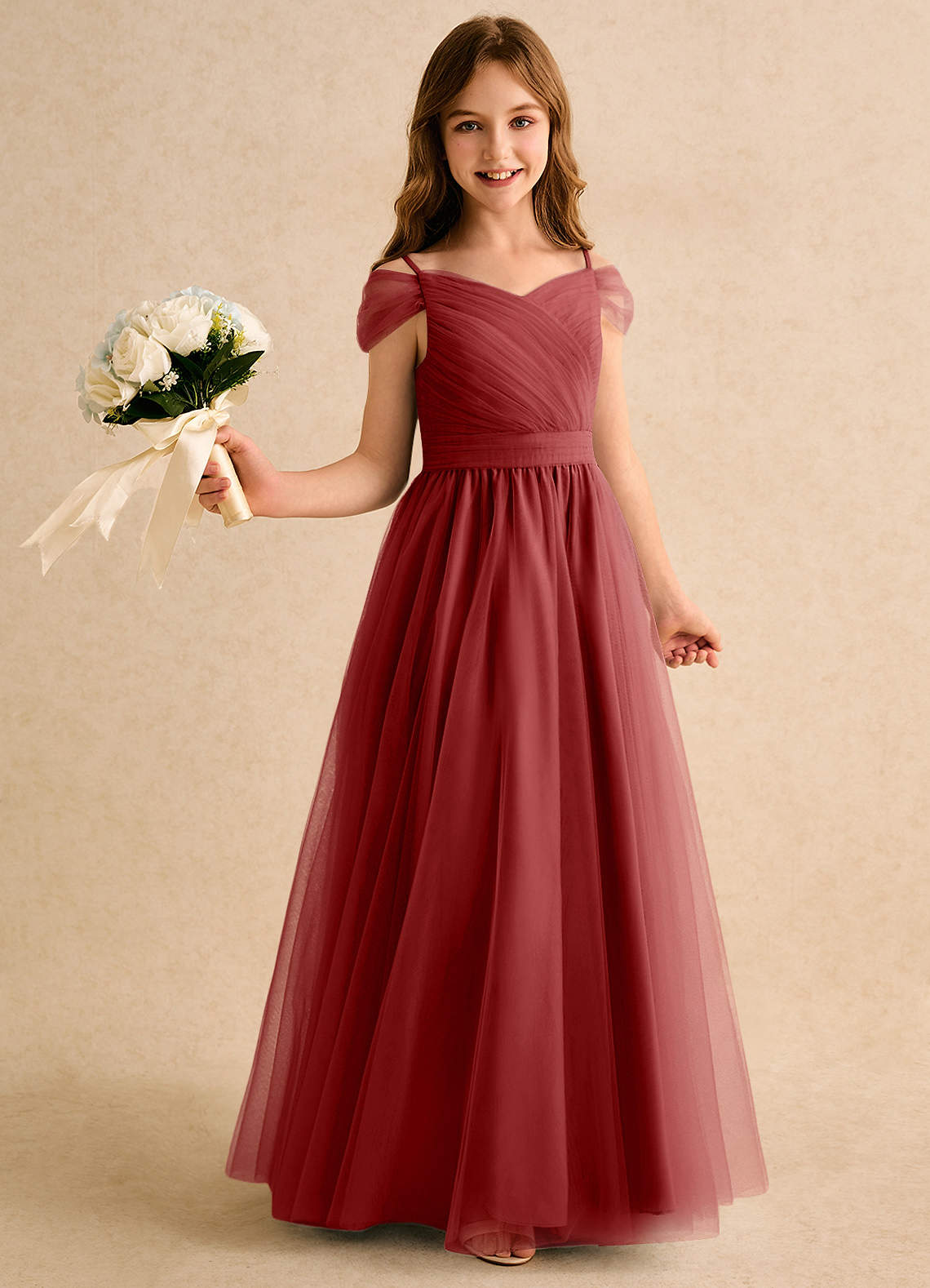 Linia A Zza ramienia Tiul Długość podłogi Sukienka
