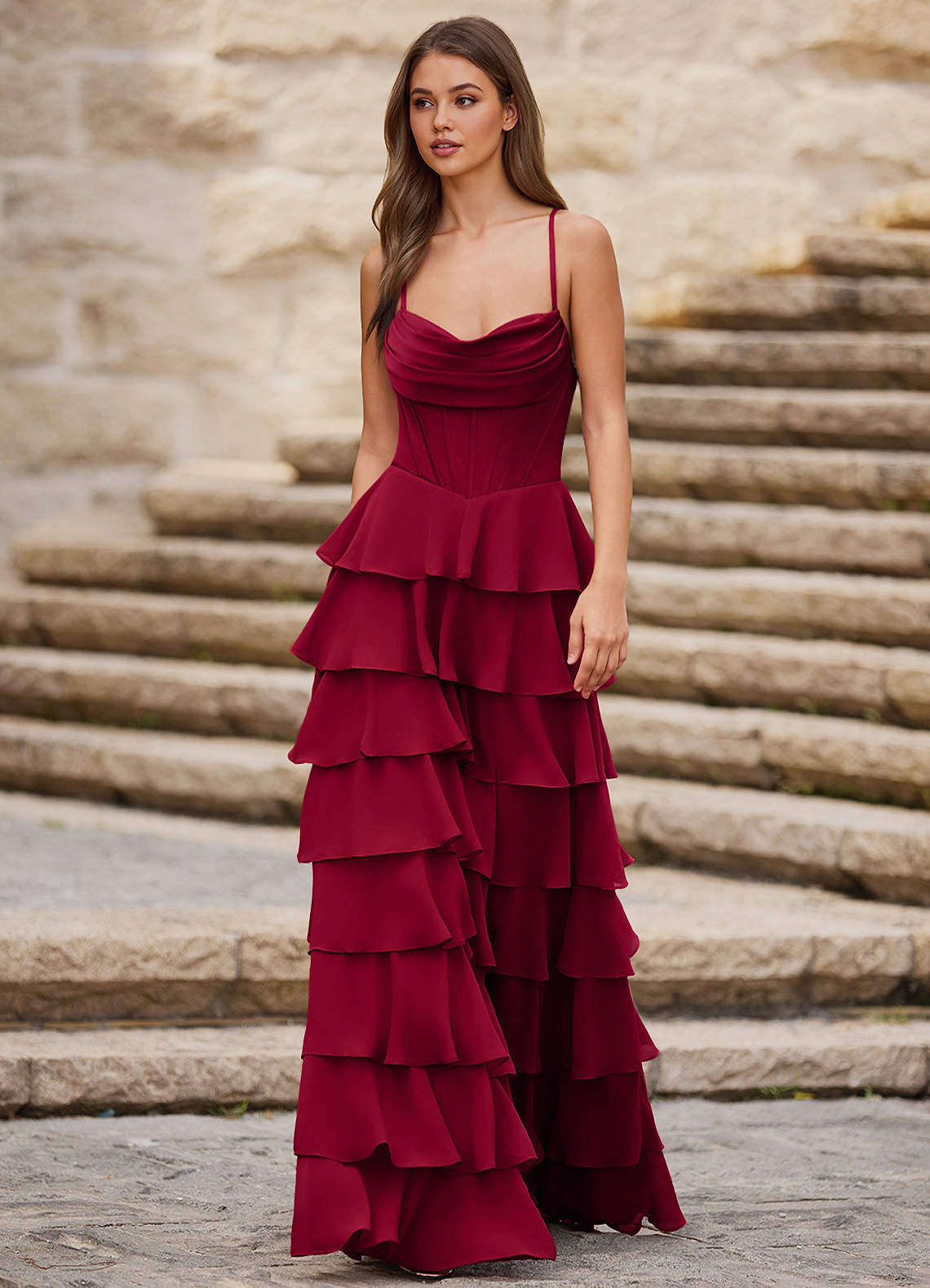 Rhythm Ciemnoczerwony Sukienka balowa z falbankami w kształcie litery A