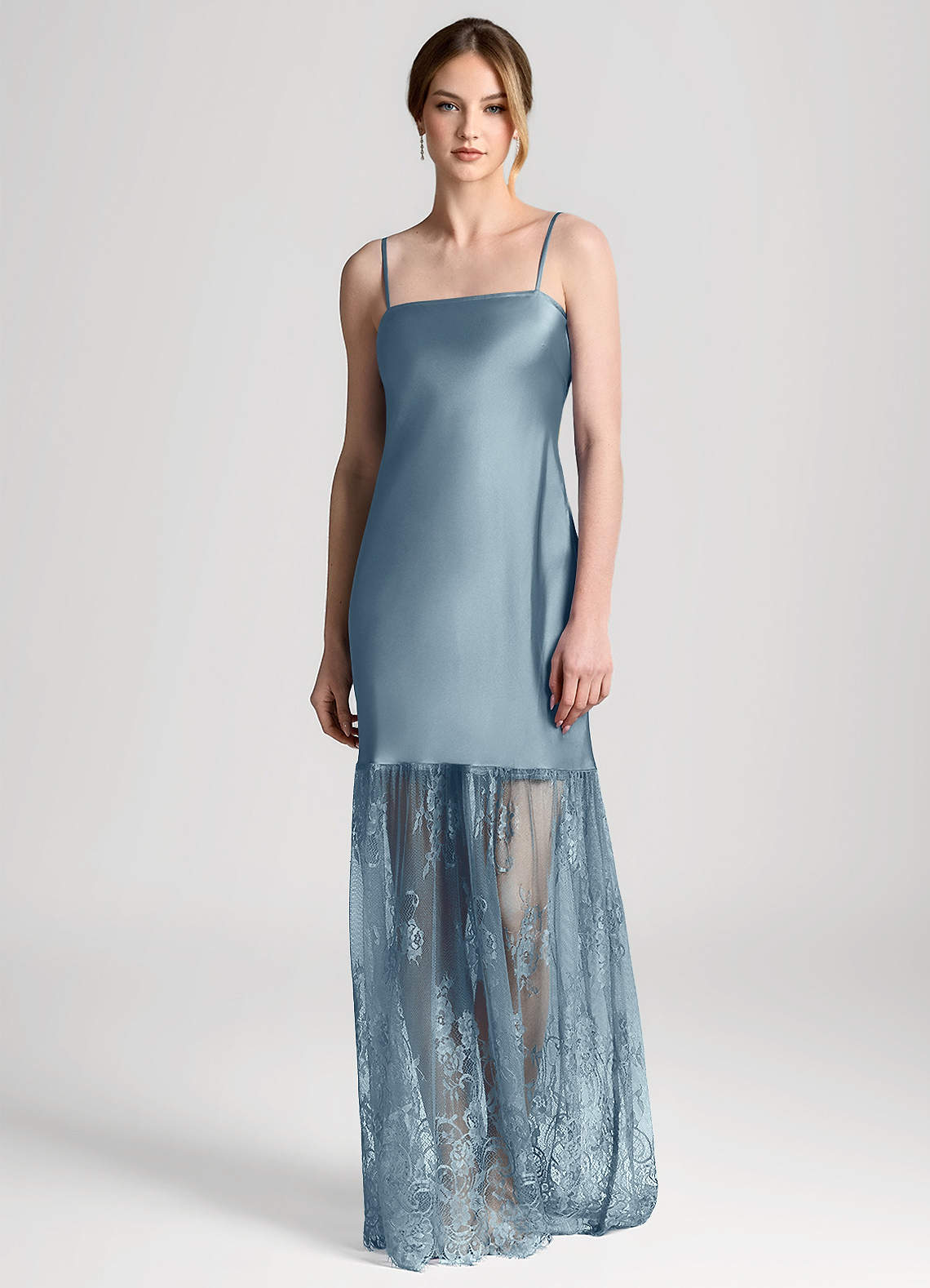 Satynowa koronkowa sukienka maxi