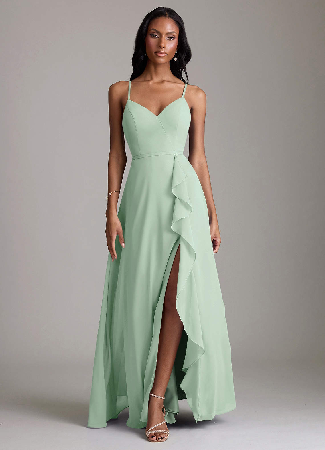 Agave A-Line V-Neck Ruffle Chiffon Dress