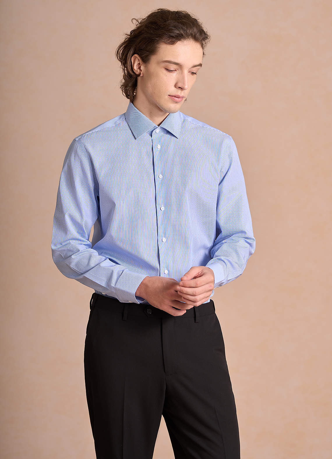 Aiden White Sky Blue 100% Cotton Non-Iron Striped Dress Shirt