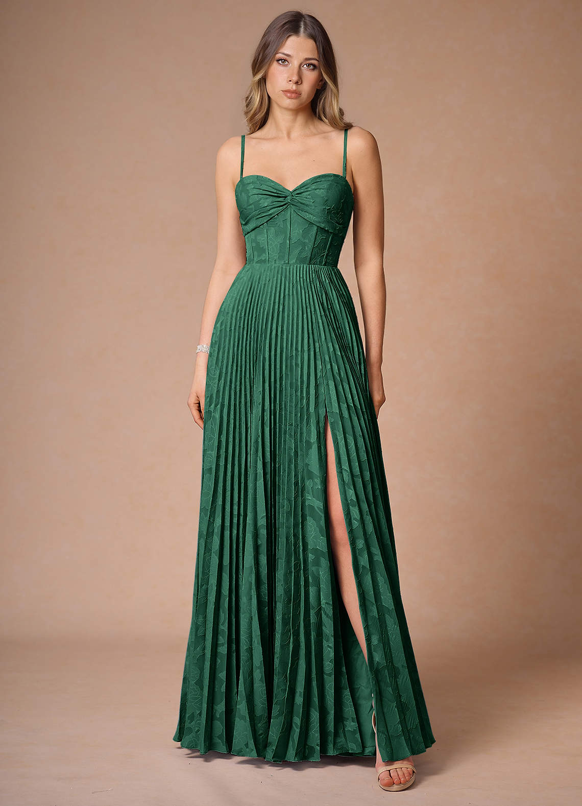 Akiko Emerald Green Pleated Maxi Dress