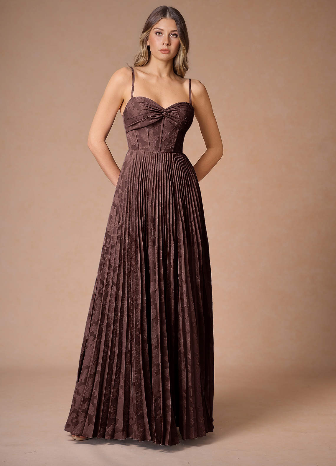 Akiko Mocha Coco Pleated Maxi Dress