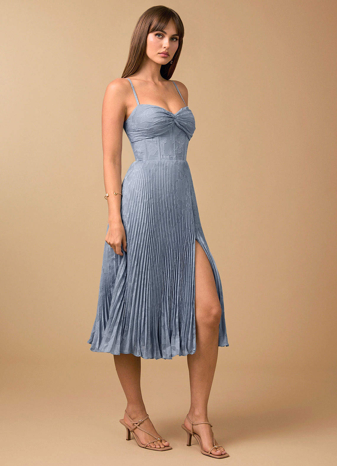 Annie Powder Blue Pleated Midi Dress