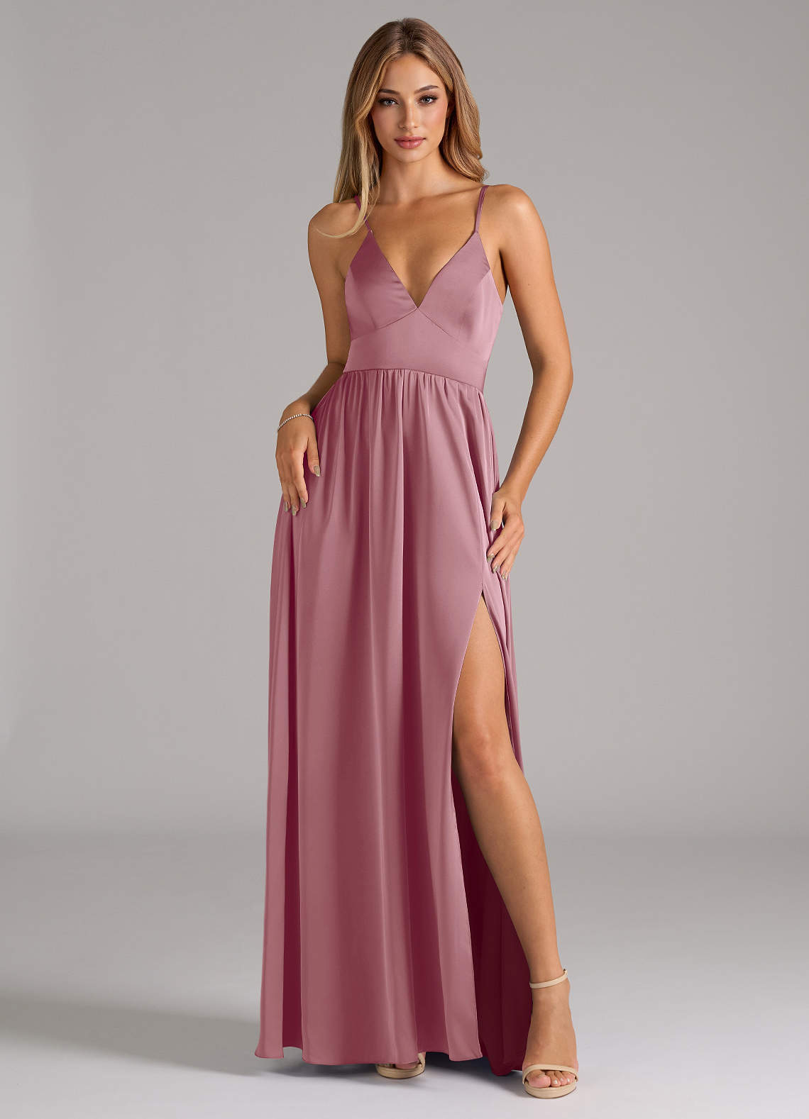 Vintage Mauve A-Line Corset Stretch Satin Dress