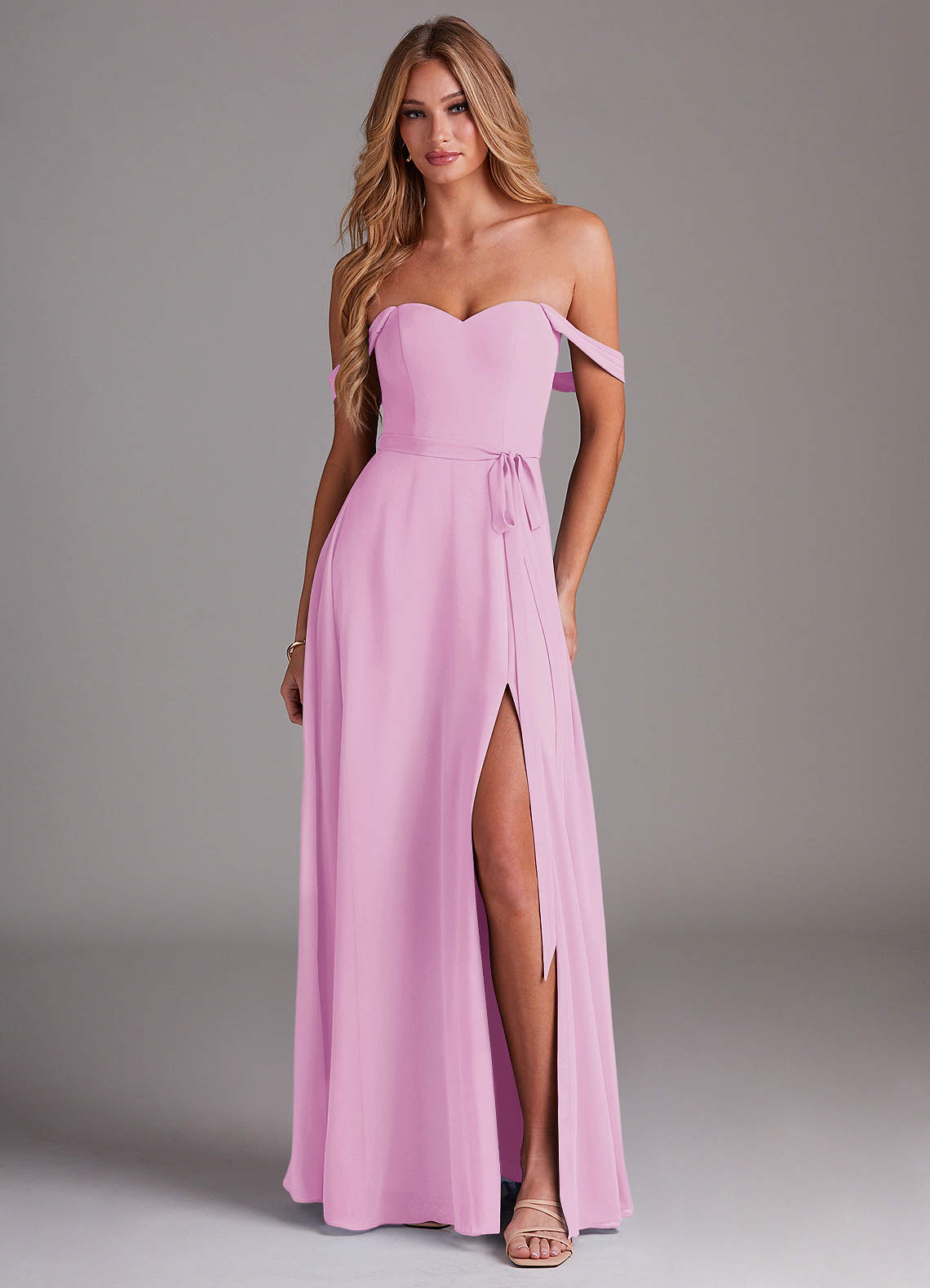 Candy Pink A-Line Off the Shoulder Chiffon Convertible Dress
