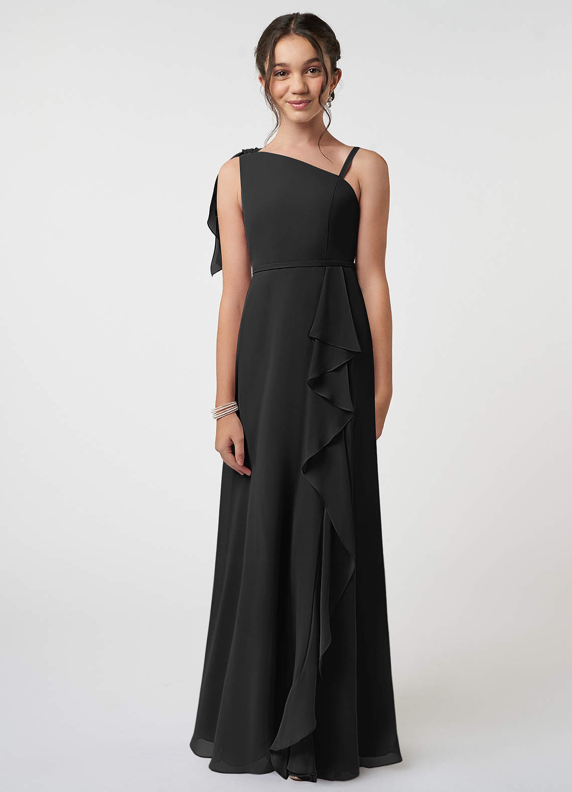 Black A-Line Bow Chiffon Dress