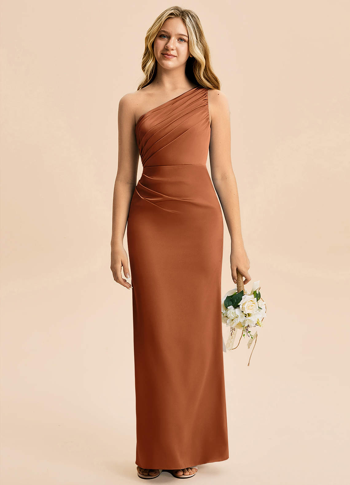 Copper Sheath Pleated Stretch Satin Dress