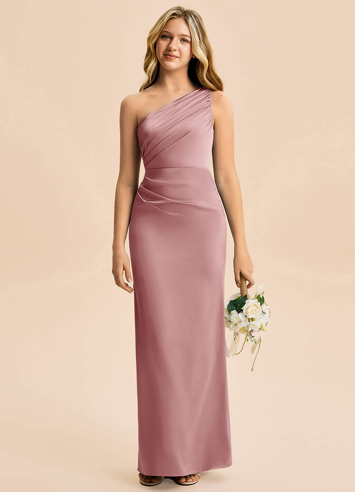 Dusty Rose Sheath Pleated Stretch Satin Dress