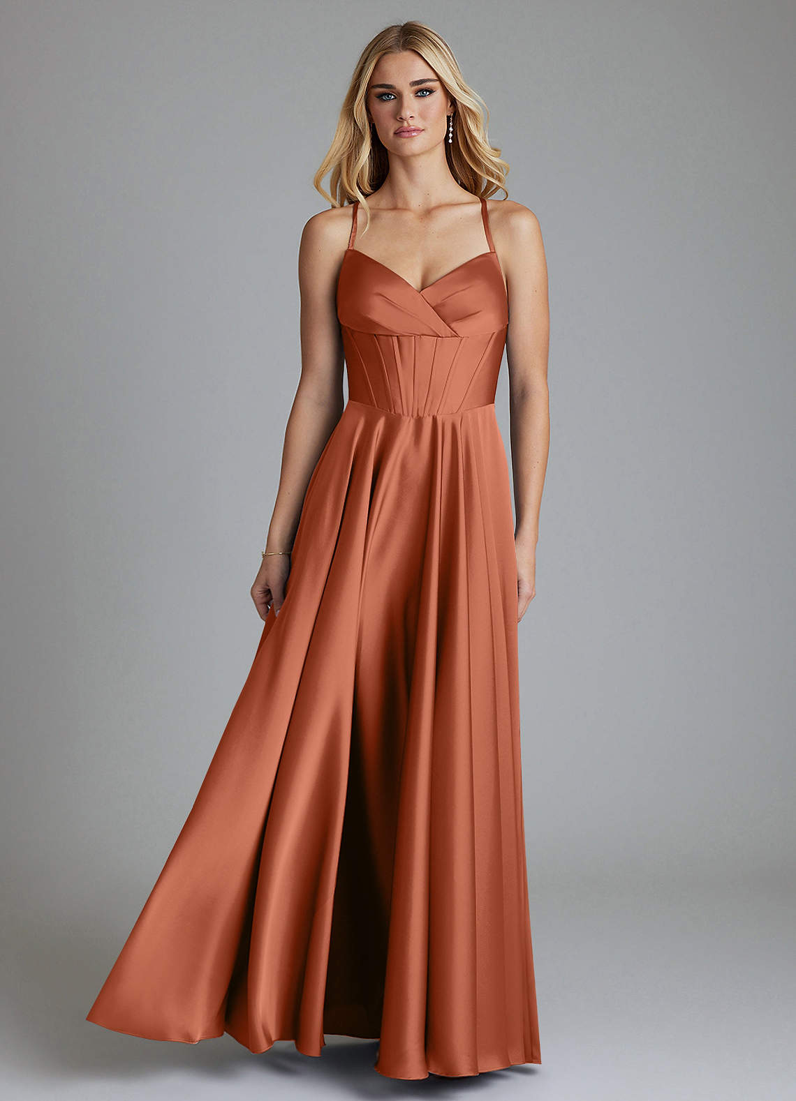 Cedar Rose A-Line Corset Stretch Satin Dress