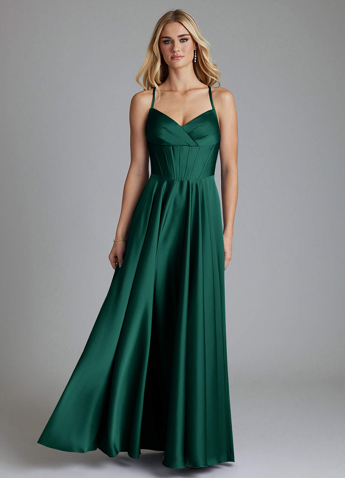 Emerald A-Line Corset Stretch Satin Dress