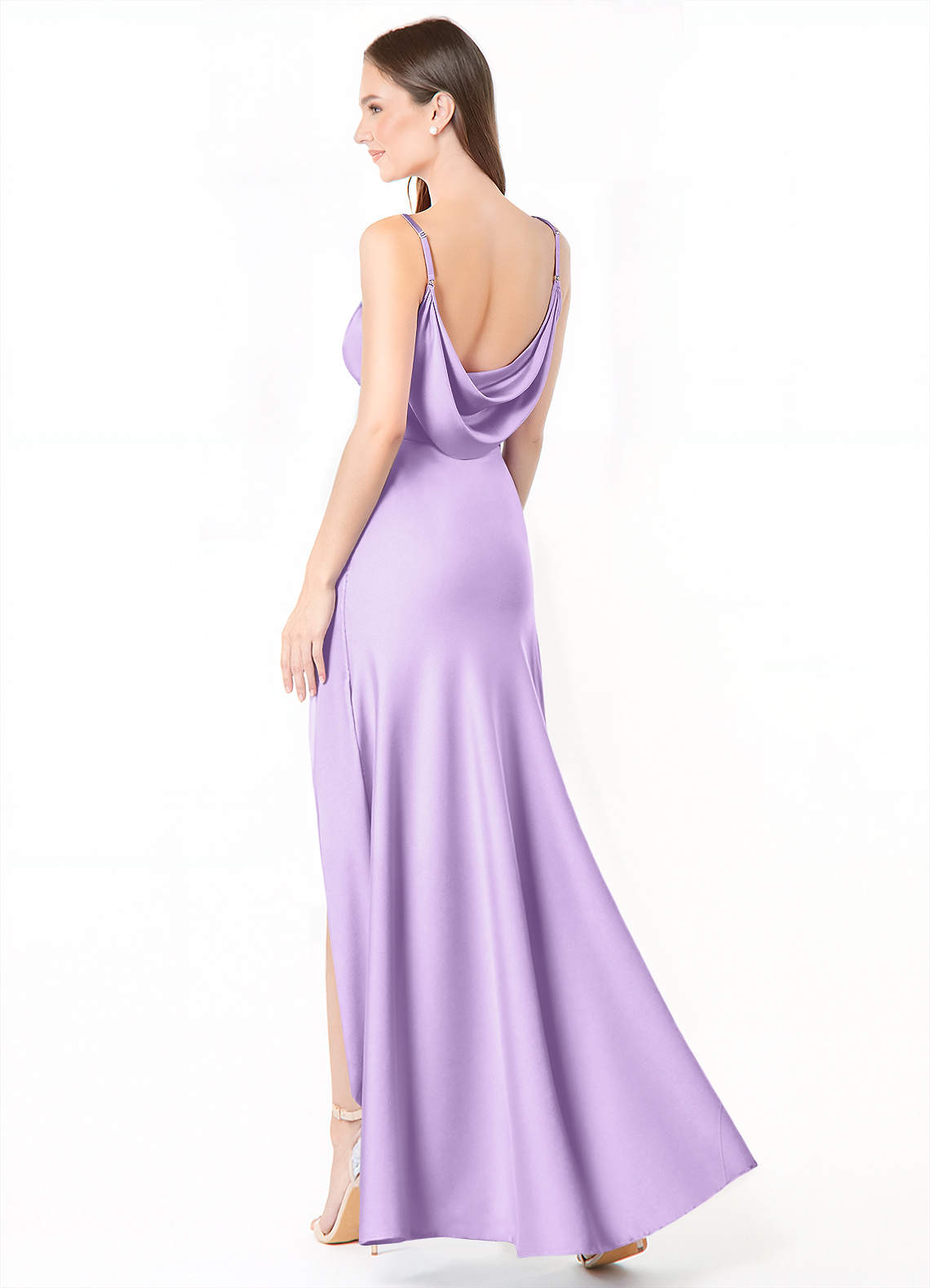 Azazie Alaija Bridesmaid Dresses Lilac Mermaid Side Slit Stretch Satin Dress image1
