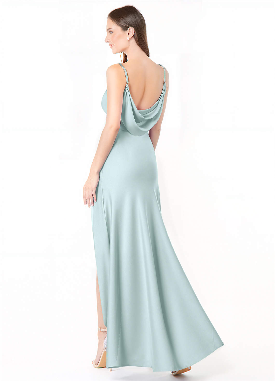 Sea Glass Mermaid Side Slit Stretch Satin Dress