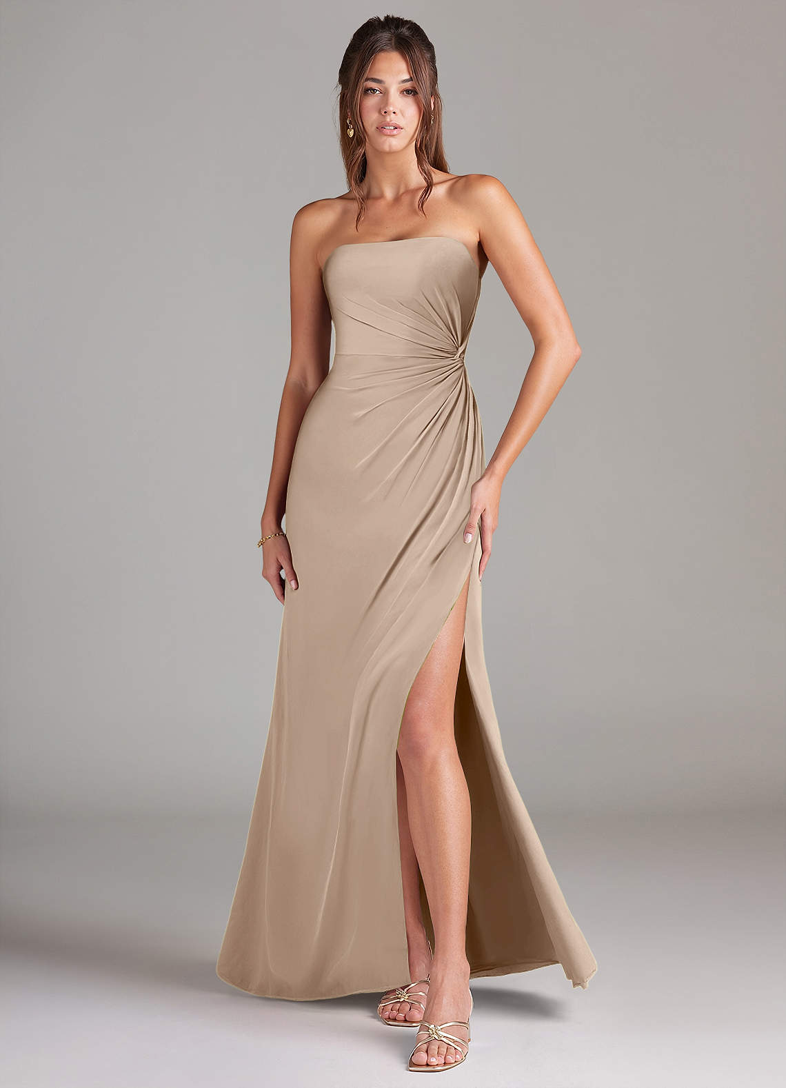 Taupe Sheath Strapless Chiffon Convertible Dress