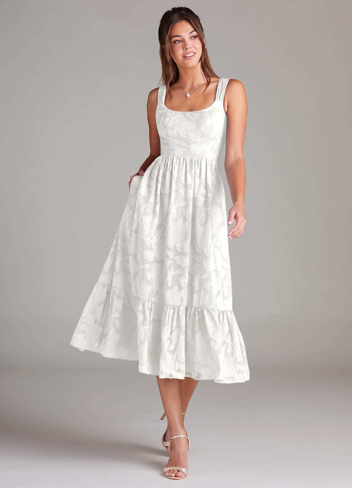 White A-Line with Pockets Floral Burnout Dress