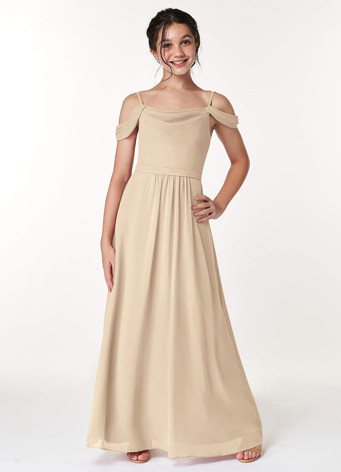 Champagne A-Line Off the Shoulder Chiffon Dress