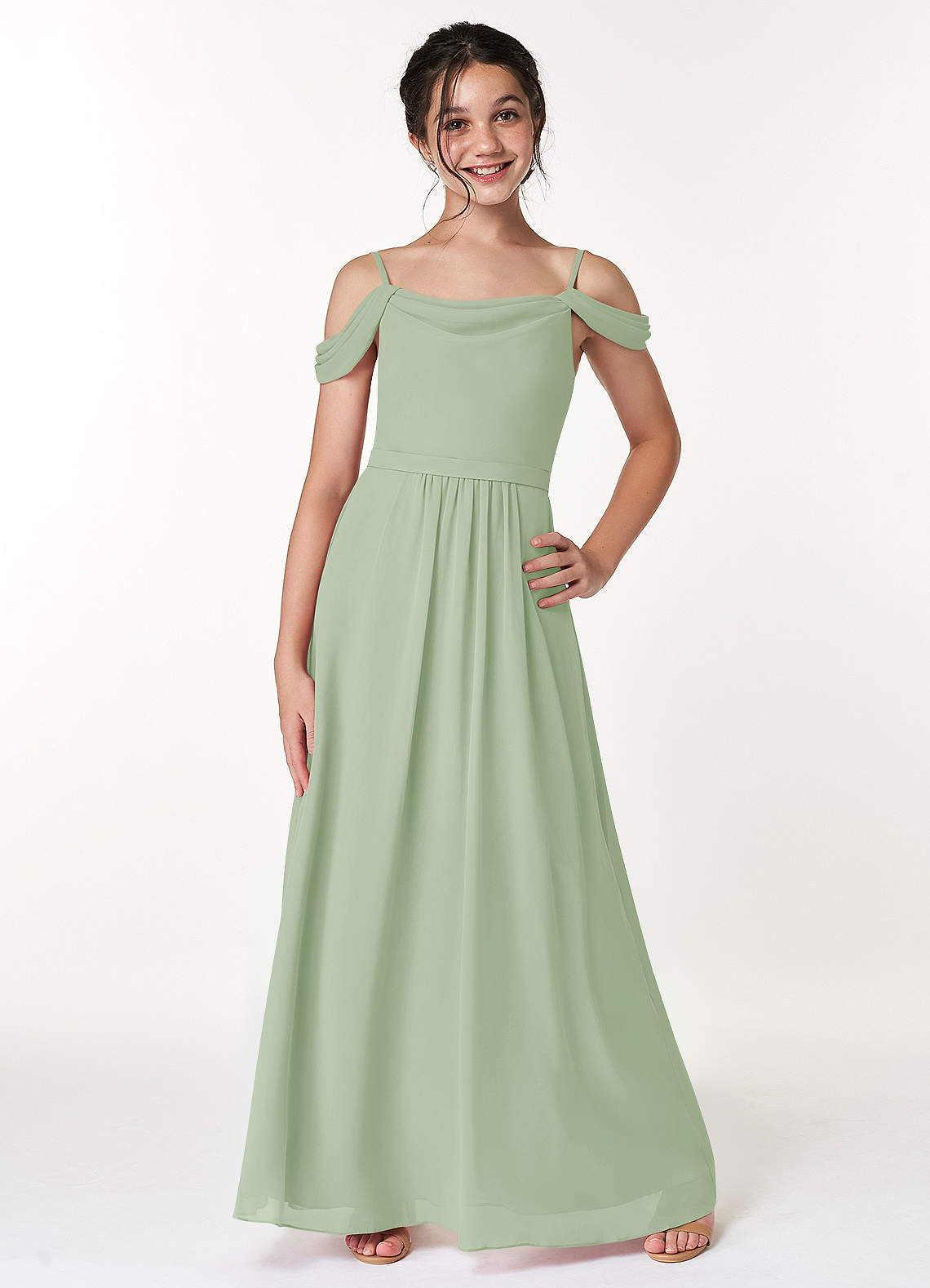 Dusty Sage A-Line Off the Shoulder Chiffon Dress