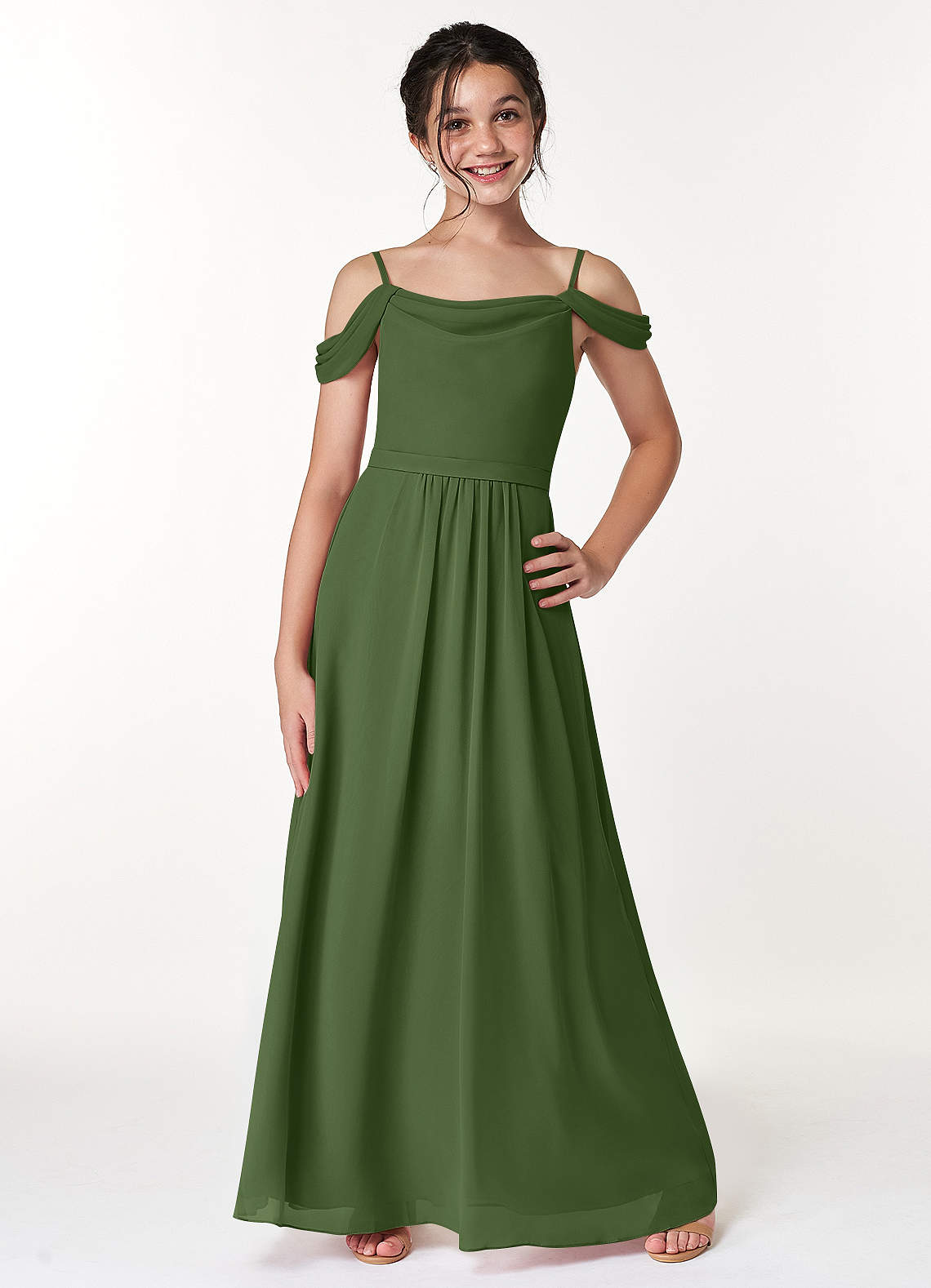 Olive A-Line Off the Shoulder Chiffon Dress