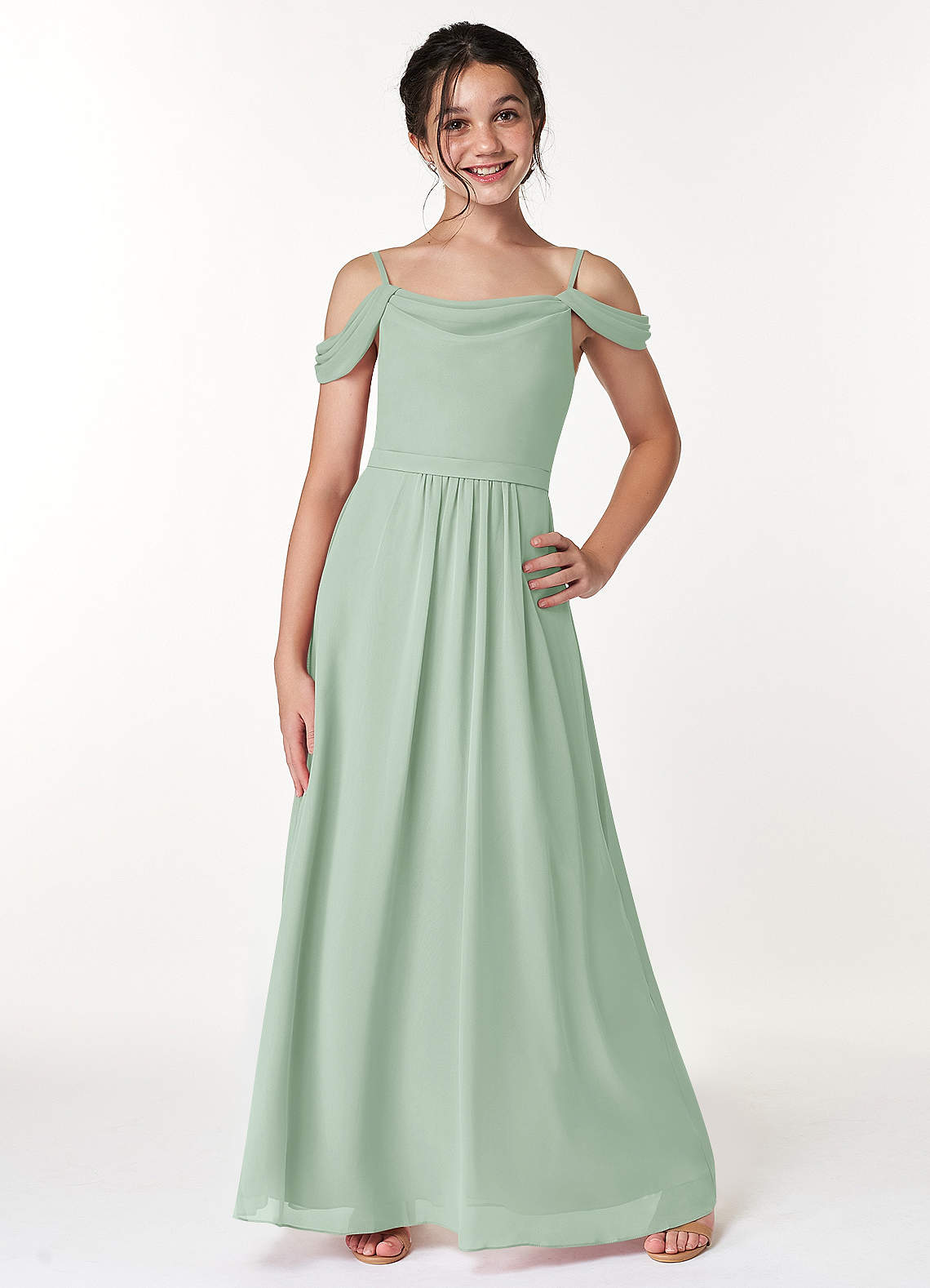 Agave A-Line Off the Shoulder Chiffon Dress