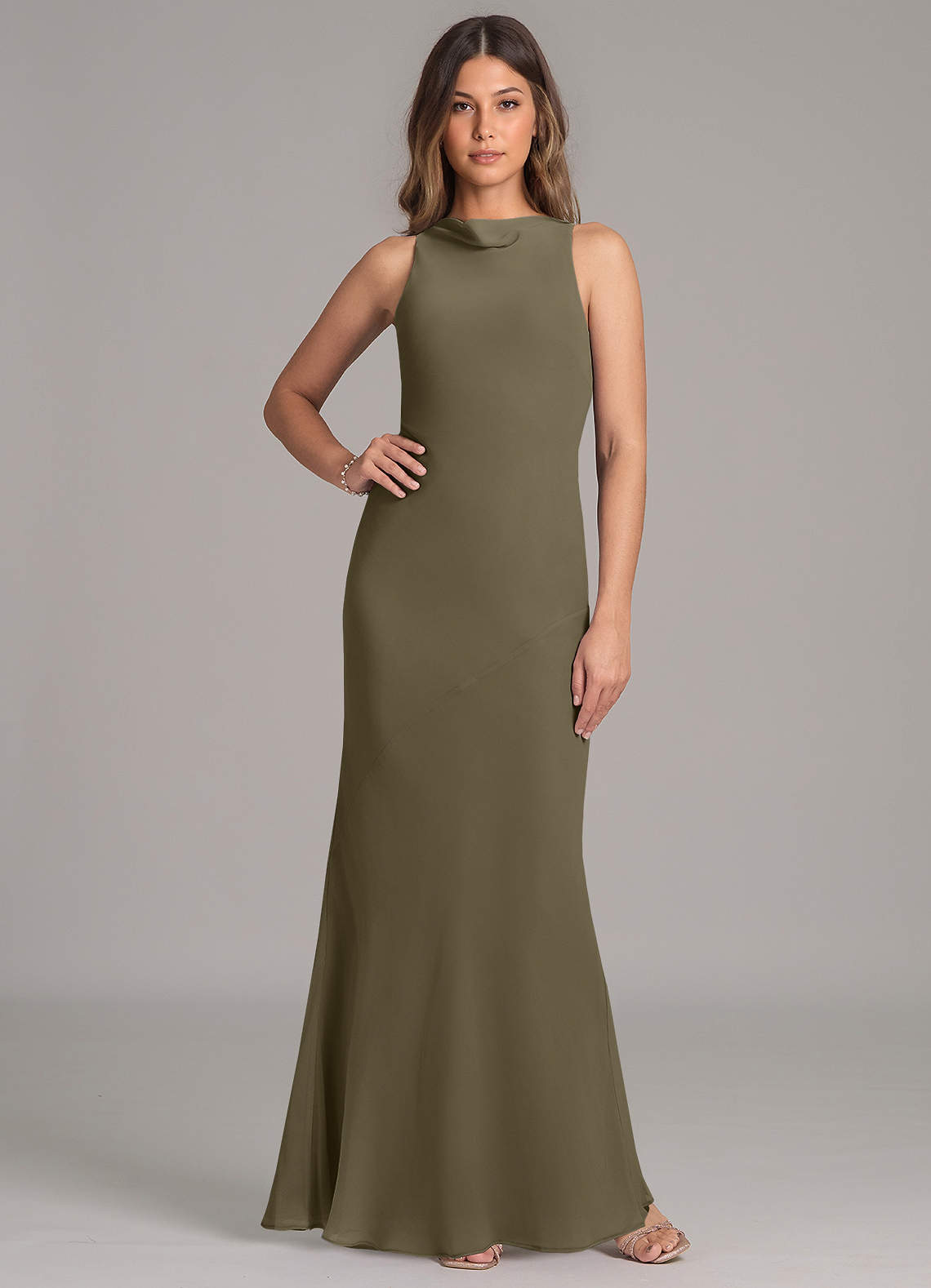 Azazie Allettie Bridesmaid Dresses Willow Green Mermaid Chiffon Dress image1