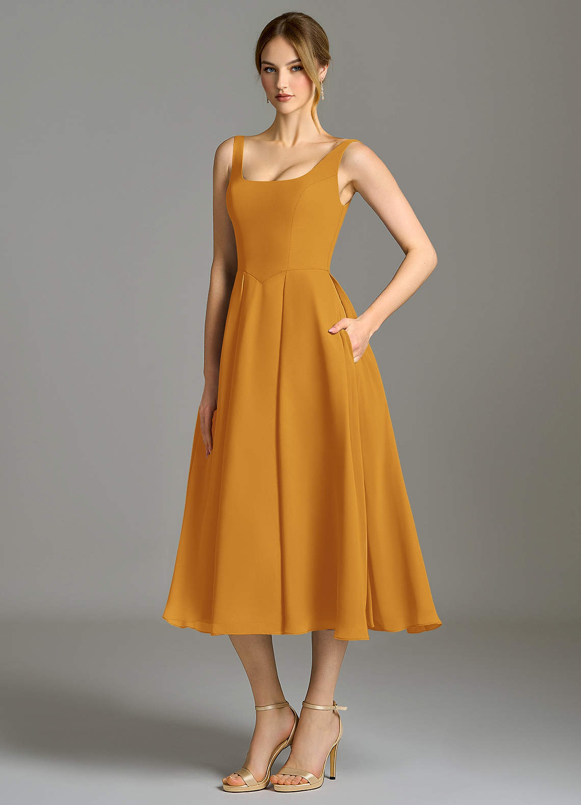 Butterscotch A-Line Pleated Chiffon Dress