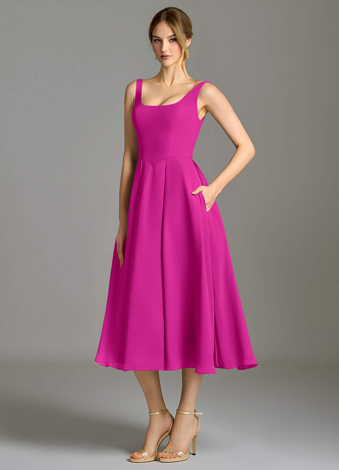 Fuchsia A-Line Pleated Chiffon Dress