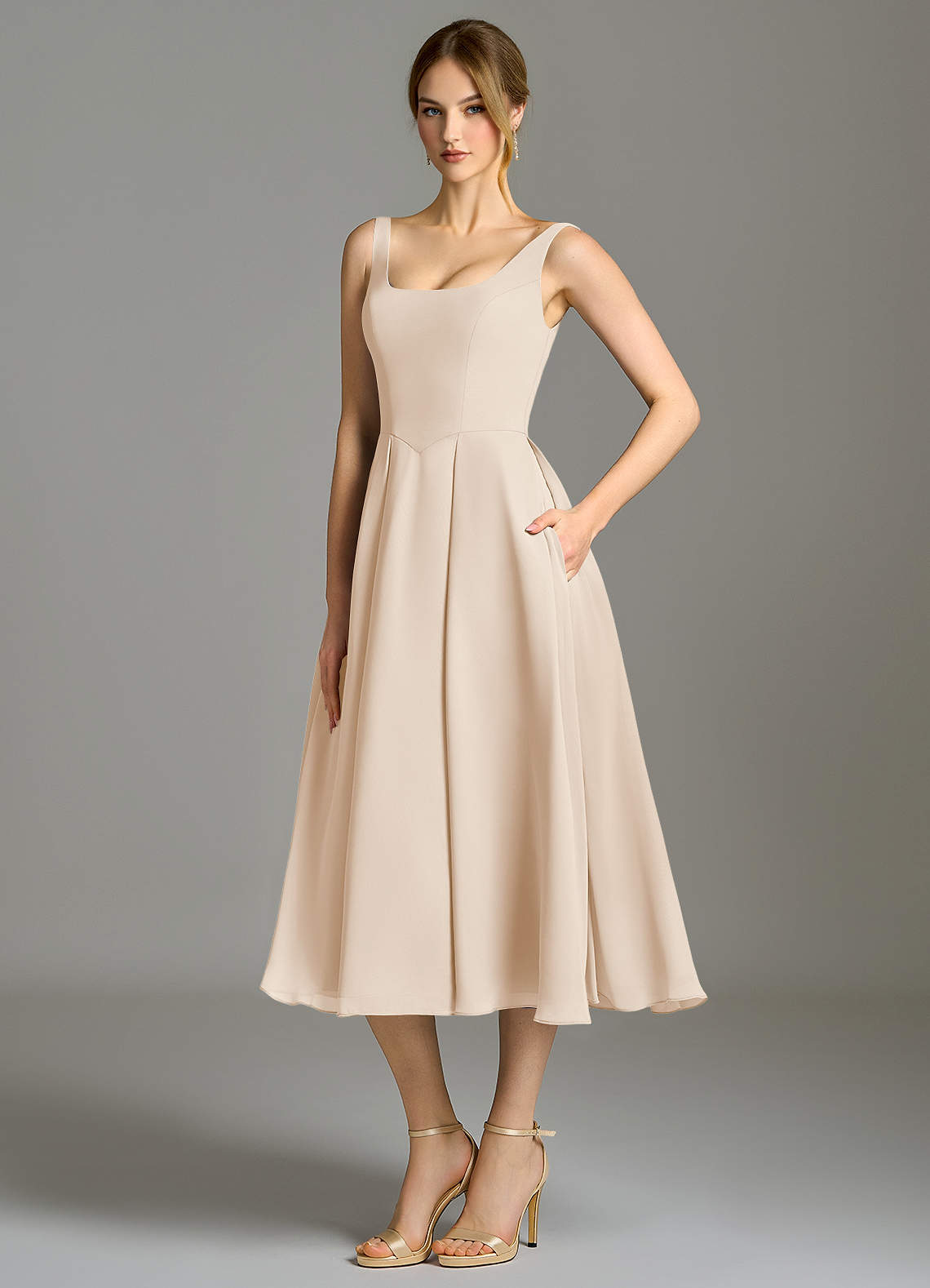 White Alabaster A-Line Pleated Chiffon Dress