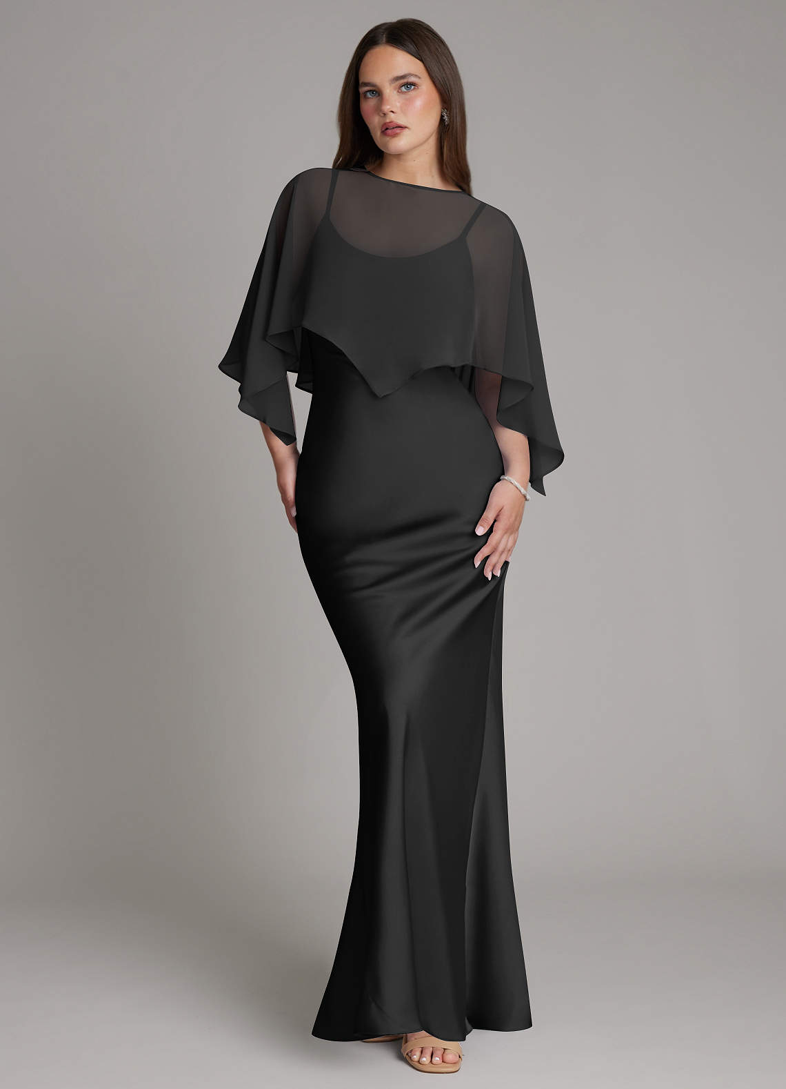 Black Mermaid Pleated Stretch Satin Dress