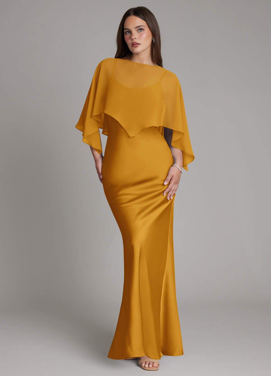 Butterscotch Mermaid Pleated Stretch Satin Dress