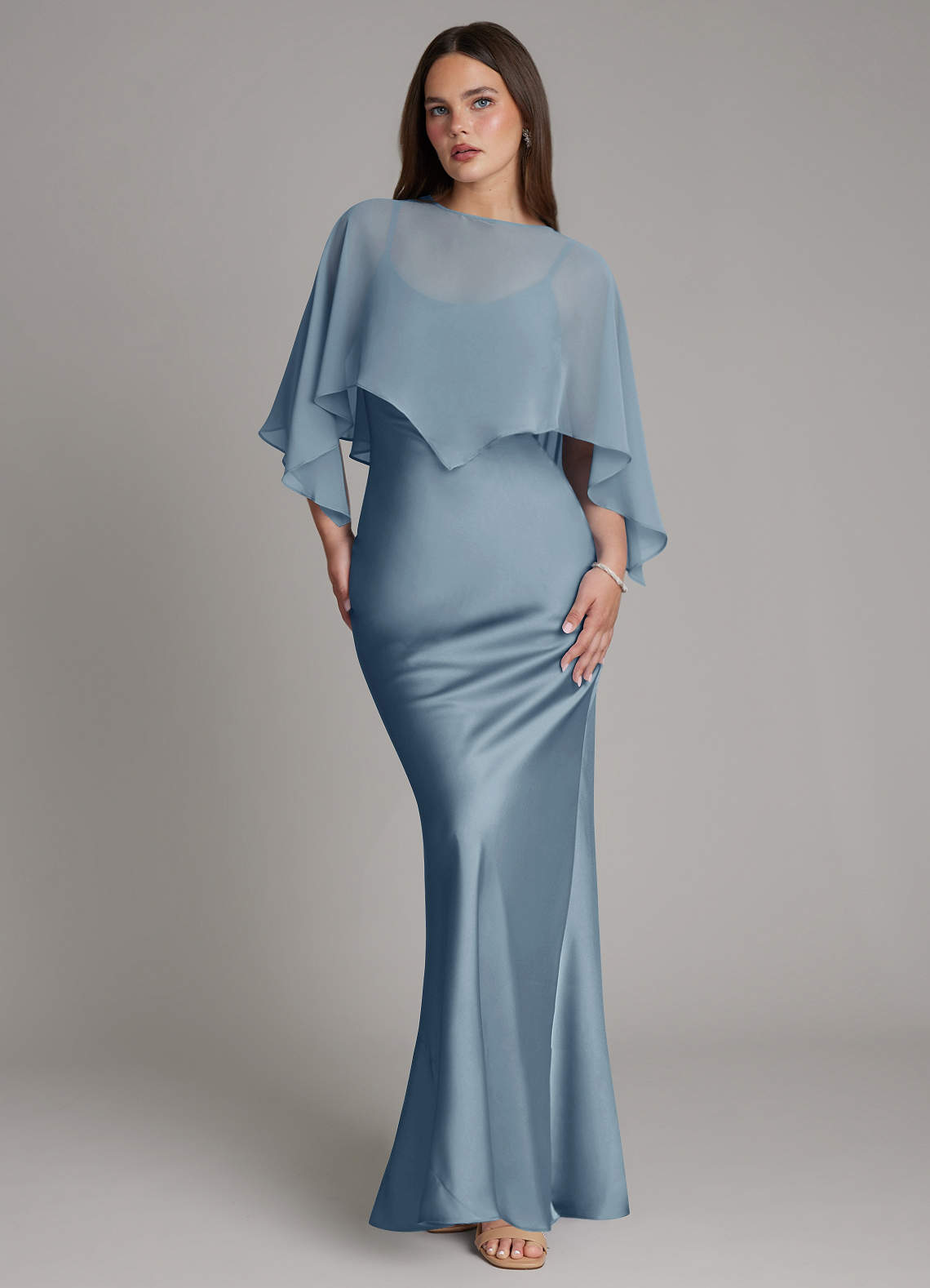 Dusty Blue Mermaid Pleated Stretch Satin Dress