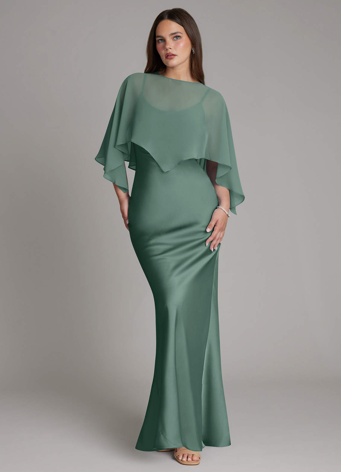 Eucalyptus Mermaid Pleated Stretch Satin Dress