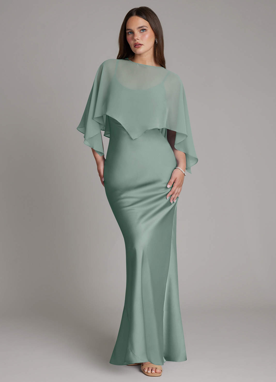 Silver Sage Mermaid Pleated Stretch Satin Dress