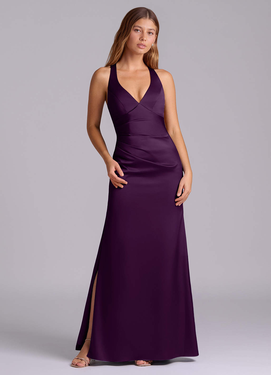 Grape A-Line Pleated Stretch Satin Dress