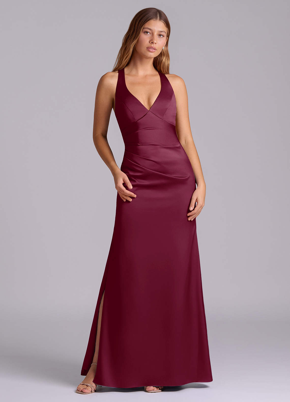 Mulberry A-Line Pleated Stretch Satin Dress