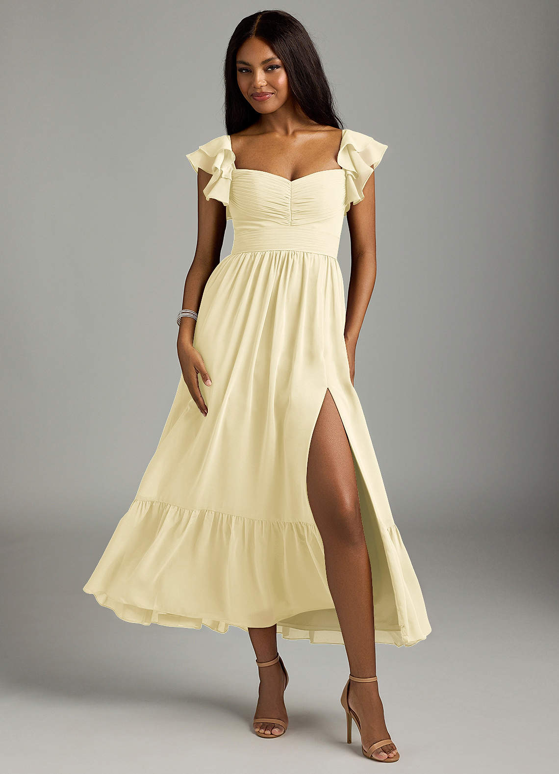 Lemon Sorbet A-Line Sweetheart Neckline Chiffon Dress