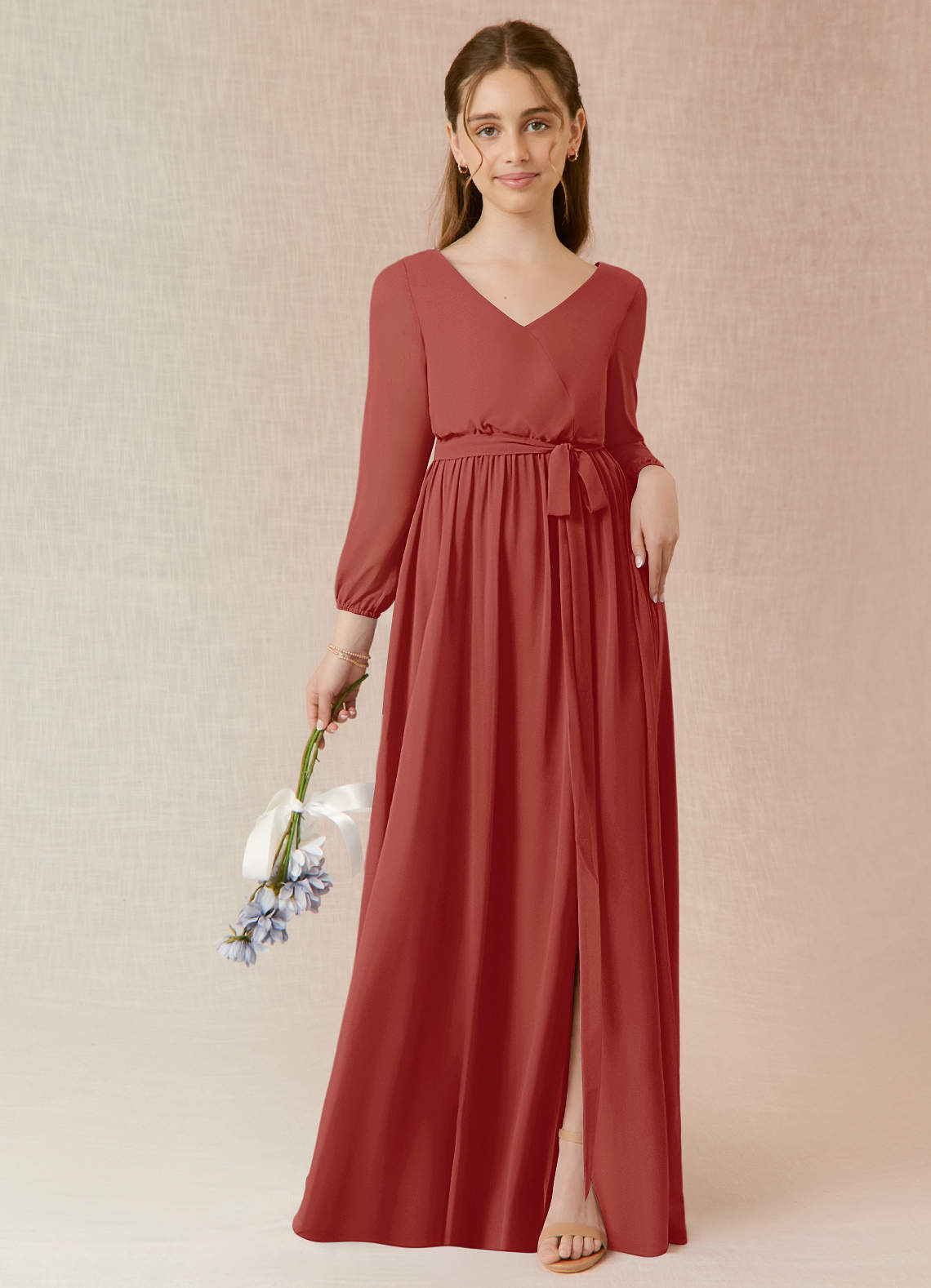 Terracotta A-Line Pleated Chiffon Dress