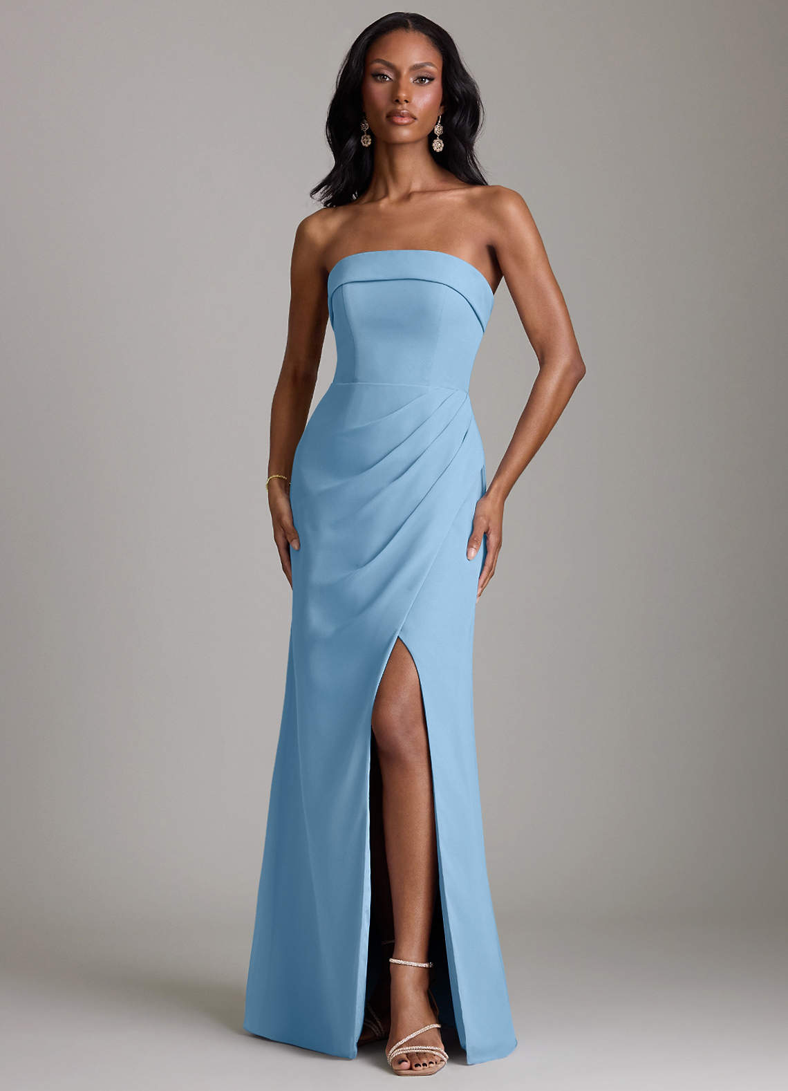 Steel Blue A-Line Strapless Chiffon Dress