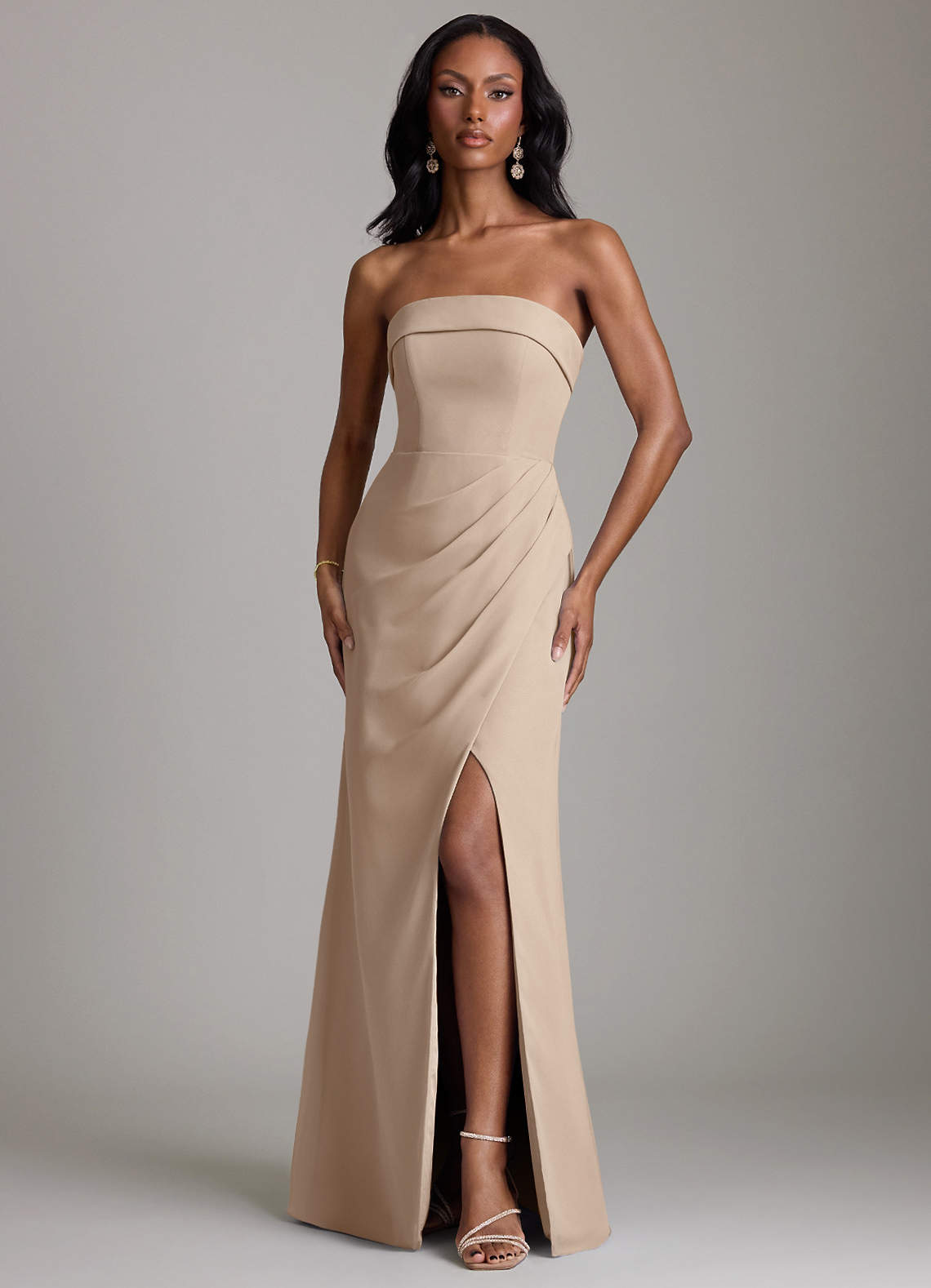 Taupe A-Line Strapless Chiffon Dress